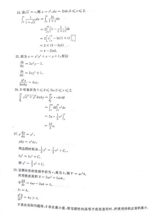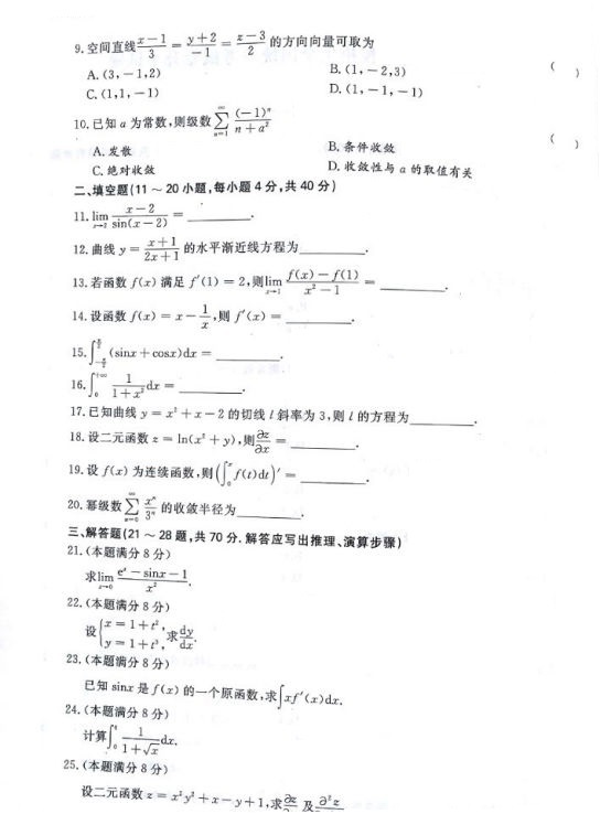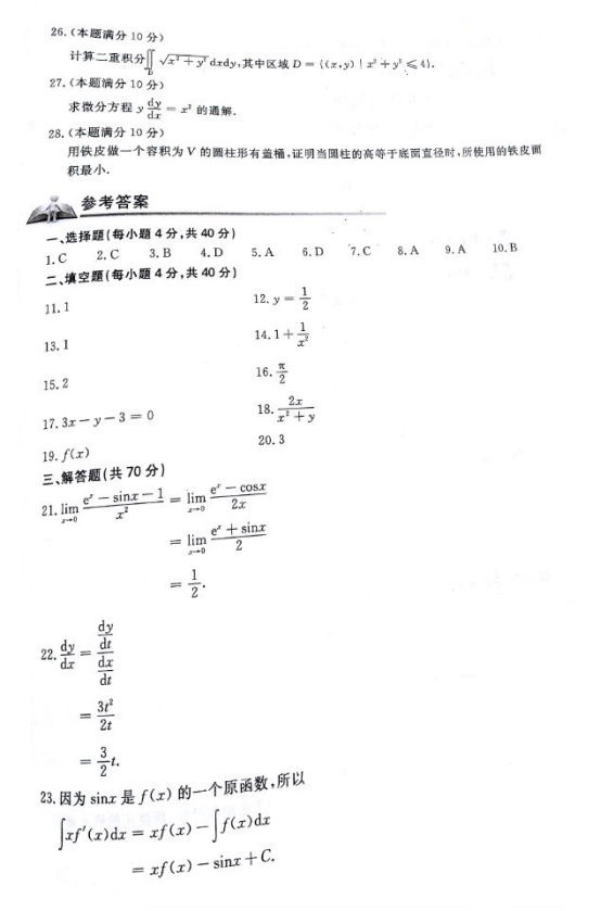 2017年成人高考专升本高等数学一真题与参考答案